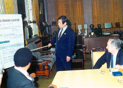 | ¡ã 1982³â 4¿ù 8ÀÏ ±¹±â¿øÀ» ¹æ¹®ÇÑ »ç¸¶¶õÄ¡ À§¿øÀå / ÇÊÀڷκÎÅÍ WTF ÇöȲÀ» µè°í ÀÖ´Ù |