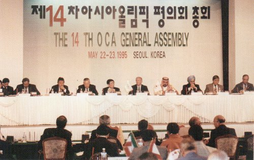 1995³â 3¿ù 23ÀÏ IOC ¼Ö¸®´ë¸®Æ¼(Solidarity:°á¼Ó, ´Ü°á) ±â±ÝÀ¸·Î °¡¿À½¹¿¡¼ OCA 43°³±¹ÀÇ ±¹°¡¿Ã¸²ÇÈÀ§¿øÈ¸(NOC) »ç¹«ÃÑÀåȸÀǰ¡ °³ÃÖµÇÀÚ ¾Æ½Ã¾Æ °æ±â´ëȸ À¯Ä¡ °æÀï À¯»ç ÀÌ·¡ óÀ½À¸·Î À¯Ä¡ ¿îµ¿ÀÌ °ú¿ÈÇÏ´Â Çö»óÀ» º¸¿´´Ù. ÀÌ ´Ü°è¿¡ À̸£ÀÚ Áö±Ý±îÁö º¸°í¸¸ ÀÖ´ø Áß±¹ÀÌ º»°ÝÀûÀ¸·Î ¡®ÇϳªÀÇ Áß±¹¡¯À» ÁÖÀåÇϱ⠽ÃÀÛÇß´Ù. Àå°ü, Â÷°ü, ´ë»ç µîÀÌ NOC ¸â¹ö¸¦ µ¿¿øÇÏ¿© °¢±¹À» ¼ø¹æÇÏ¸ç °¡¿À½¹ À¯Ä¡ ¹Ý´ë ÀÛÀüÀ» Àü¸éÀûÀ¸·Î Æì±â ½ÃÀÛÇß´Ù. À̶§ Áß±¹ Àå°ü °â NOCÀ§¿øÀåÀº ¿ì »þ¿ÀÁÖ(Wu Shaoju)°í IOCÀ§¿ø ÇãÀü·®(He Jenliang)À̾ú´Ù.