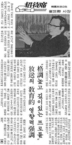 ÃÖ¼¼°æ(õËá¦ÌÏ) ÇüÀÌ °ü°è¿¡¼ ³²±ä ¾÷ÀûÀº ´ë´ÜÇÏ´Ù. °øº¸Ã³Â÷°ü µîÀ» ¿ªÀÓÇÏ°í °ü°è¿¡¼ ¶°³ ÈÄ ºÎ»ê(ݼߣ)ÀϺ¸ »çÀåÀ¸·Î¼ ¾ð·Ð°è¿¡ ¸ö´ã±âµµ ÇÏ¿´´Ù. KBS »çÀå ÀçÁ÷ ½Ã¿¡´Â ¸ðµç Á÷¿øµé·ÎºÎÅÍ Á¸°æÀ» ¹ÞÀº »ó»ç¿´´Ù°í ¾Ë·ÁÁö°í ÀÖ´Ù. ¼Ò½ÅÆÄÀÎ ÃÖ(õË)ÇüÀº ±× º¹ÀâÇÑ KBS¿¡¼ ¿ÜdzÀ» ¸·´Âµ¥ ÇѸòÀ» º¸±âµµ ÇÏ¿´´Ù.