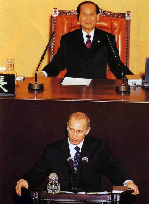 | ¡ã 2001³â 2¿ù 8ÀÏ ¹æÇÑ Áß ±¹È¸¿¡¼ ¿¬¼³Çϰí Àִ Ǫƾ ·¯½Ã¾Æ ´ëÅë·ÉÀ» ¸Â¾Æ |