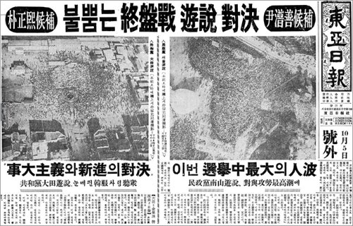 | ¡ã 1963³â ¹ÚÁ¤Èñ, À±º¸¼± Èĺ¸ °£ÀÇ ´ë°áÀ» ½ÇÀº µ¿¾ÆÀϺ¸ ´ëÅë·É ¼±°Å È£¿Ü |