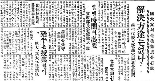 ÀÌ·¯ÇÑ Â÷º°´ë¿ì¿¡ Ç×ÀÇÇÏ¿© ÀÇÀü°è ÇлýµéÀº 47³â 7¿ù 2ÀÏ ÃÑÅðÇÐÀ» °áÀÇÇϴ°¡ Çϸé 8¿ù 24ÀÏ¿¡´Â ÀÇÀü°è ±³¼ö 50¸íÀÌ »çÁ÷À» ¼±¾ðÇÏ´Â µî ´Ù½Ã ¼Ò¶õÀÌ ¹ú¾îÁ³´Ù. ±×·¯³ª ¾ç °è¿ ±³¼öµéÀÇ ±ØÀûÀΠŸÇùÀ¸·Î 8¿ù 29ÀÏ¿¡´Â ±³³»ºÐ±Ô°¡ ÀϴܶôµÇ¾ú´Ù. ¿ì¸® ÇпìµéÀº 8¿ù 30ÀÏ, ¼¿ïÀÇ´ë Á¦ 1ȸ Á¹¾÷»ýÀ¸·Î Á¹¾÷ÇÏ¿´´Âµ¥, Á¹¾÷½Äµµ Á¦´ë·Î °®Áö ¸øÇß´ø °ÍÀº ºÒÇàÇÑ ÀÏÀ̾ú´Ù.