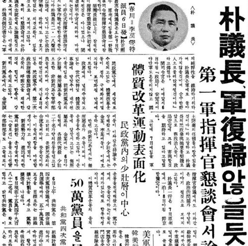 ¡¶µ¿¾ÆÀϺ¸¡·¿¡ ³»°¡ ¾´ ±â»ç°¡ ³ª°¡ÀÚ ¼¿ï¿¡ ÀÖ´ø ±èÁ¾¿À(ÐÝñ£çé) À°±º Âü¸ðÃÑÀåÀÌ ±ÞÈ÷ Ãáõ¿¡ ÀÖ´Â ¹Î±â½Ä »ç·É°üÀ» ã´Â µî Å« ¼Òµ¿ÀÌ ¹ú¾îÁ³´Ù. ±èÁ¾¿À À屺Àº ´ç½Ã ¹Úº´±Ç(ÚÓܹÏí) ±¹¹æÀå°ü°ú ÇÔ²² ¹ÚÀÇÀå ÈÖÇÏÀÇ Çõ¸í¼¼·ÂÀÌ ¹ÎÁ¤¿¡ ºÒÂüÇÏ°í ±º¿¡ º¹±ÍÇϱ⸦ Èñ¸ÁÇß´ø °ÍÀÌ´Ù. ±×¶§ ±èÁ¾¿À Âü¸ðÃÑÀåÀÇ Àüȸ¦ ¹ÞÀº ¹Î±â½Ä »ç·É°üÀº ÀÚ½ÅÀÇ ¹ß¾ðÀÌ ½Ç¸° ¡¶µ¿¾ÆÀϺ¸¡· À̸¸¼· ±âÀÚ°¡ ±×·¸°Ô ½èÀ» »Ó¡°À̶ó°í ³ª¿¡°Ô ¹Ì·ð´ø ¸ð¾çÀ̾ú´Ù.