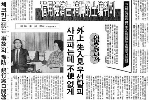 ¡ã ±¹¹ÎÀºÇàÀº 1980³â ÃÖÃÊ·Î ½Å¿ëÄ«µå¸¦ ¹ß±ÞÇÏ¸ç ½Å¿ë°æÁ¦, ½Å¿ë»çȸÀÇ Ãâ¹ßÀ» ¾Ë·È´Ù / ½Å¹®ÀÇ ±â»ç´Â °æÇâ½Å¹®ÀÇ ¼Û¿øÈñ ¿©·ùÀÛ°¡¿ÍÀÇ ´ë´ã |