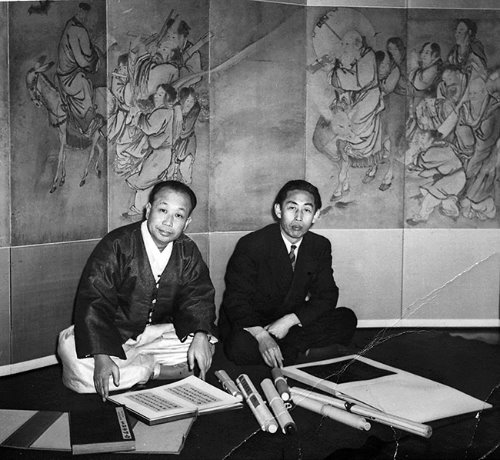 ȸ¿øµéÀº »ó¼È¸¿¡ ³ª¿À¸é 2°£ À广¿¡ ³õ¿© ÀÖ´Â Áß±¹Á¦ È·ùŹÀÚ¿¡ ¿øÇüÀ¸·Î µÑ·¯¾É¾Æ ¼±»ýÀÇ Ã¼º»(ô÷Üâ) ¾²´Â °ÍÀ» ÁöÄѺôÙ. ÀÌ È·ùŹÀÚ´Â Å« À广ÇüÀÌ¾î¼ ¿ »ç¶÷ÀÌ ¾É°íµµ ¿©À¯°¡ ÀÖÀ» Á¤µµ¿´´Ù. ¼Ò¹®¿¡ µû¸£¸é ÀÌ Å¹ÀÚ´Â ´Ü¿ì(À̿빮)°¡ Áß±¹¿¡ °¡¼ ¿¾ Ȳ½Ç¿¡¼ ¾²´ø ¹°°ÇÀ» »ç¿Ã ¶§ °°ÀÌ µé¿©¿Â °ÍÀ̶ó°í Çß´Ù. ¹°·Ð ¸ñÀçµµ ÈǸ¢Çϰí Á¶°¢µµ ¶Ù¾î³µ´Ù.