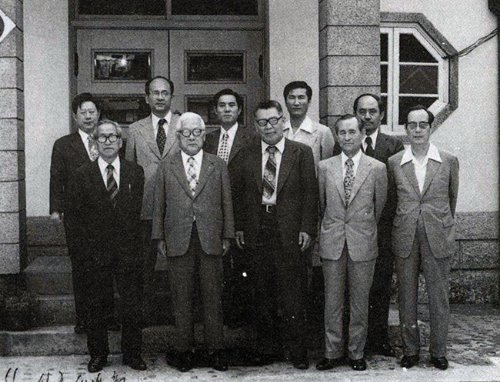 | ¡ã Çѱ¹ ÀÇÇÐ»ç ÆíÂùÀ» À§ÇÑ °£´ãȸ¸¦ ¸¶Ä¡°í ¿Ü±³±¸¶ôºÎ¿¡¼ / ¾ÕÁÙ ¿ÞÂʺÎÅÍ ¸í°è¿Ï, ¹ÚÁÖº´, ³ª¼¼Áø, ÀÌû±¸, ±è±âÈ« ¼±»ý, µÞÁÙ ¿ÞÂÊ µÑ°ºÎÅÍ ÇÊÀÚ, Àå¿ìÇö, À°¼¼±Õ ¾¾, ÀÌ¿µÅà ±³¼ö (1974. 7. 11.) |