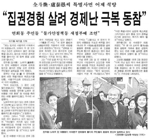 ±×·¯³ª ´©°¡ ¹¹·¡µµ »ç¸éÀº °è¼ÓµÈ´Ù. ±¹¹Î´ëÈÇÕ(ÏÐÚÅÓÞûúùê), ¾ó¸¶³ª ÁÁÀº ±¸½ÇÀΰ¡. À̹ø¿¡´Â ±è¿µ»ï(ÑÑçµß²) Á¤ºÎÀÇ ÀӱⰡ ´ÙÇØ°¡°í ±è´ëÁß(ÑÑÓÞñé) ´ëÅë·É ´ç¼±ÀÚ°¡ È®Á¤µÈ Á÷ÈÄ ÀüµÎȯ(îïÔàüº)‧³ëÅ¿ì(ÖÔ÷Áé×) µÎ ÀüÁ÷´ëÅë·É°ú À̸¥¹Ù 12.12, 5.18, °ü·ÃÀÚ ±×¸®°í ºñÀÚ±Ý »ç°Ç °ü·ÃÀÚ µîÀÌ »ç¸é‧º¹±ÇµÇ¾ú´Ù. ÀüÁ÷ ´ëÅë·ÉµéÀº °¢°¢ ¹«±â¡¿ª, ¡¿ª 17³âÀ̶ó´Â ¹«°Å¿î ÇüÀ» ¼±°í¹Þ°í 1997. 4. 17. ´ë¹ý¿ø¿¡¼ È®Á¤µÇ¾ú´Âµ¥, ÇØ¸¦ ³Ñ±â±âµµ ÀüÀÎ 12. 22. °á±¹ Ç®·Á³ª°í ¸¸ °ÍÀÌ´Ù.