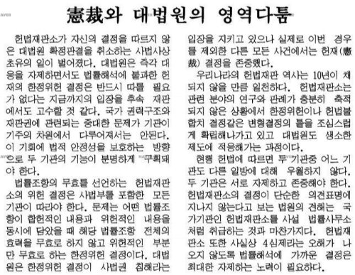 ¶Ç ÇϳªÀÇ Ä¿´Ù¶õ ´ë¸³Àº Çå¹ýÀçÆÇ¼ÒÀÇ º¯Çü°áÁ¤(ܨû¡Ì½ïÒ)ÀÇ ÀÏÁ¾ÀÎ ÇÑÁ¤À§Çå(ùÚïÒêÞúÊ)°áÁ¤ÀÌ ¹ß´ÜÀ̾ú´Ù. 1997³â ¿¬¸», IMF ÇÑÆÄ·Î ¸ðµÎ ¿ì¿ïÇÑ ³¯À» º¸³»°í ÀÖÀ» ¶§, Çå¹ýÀçÆÇ¼Ò°¡ ´ë¹ý¿ø ÆÇ°áÀ» Ãë¼ÒÇÏ´Â Ãæ°ÝÀûÀÎ ÀÏÀÌ ¹ú¾îÁ³´Ù. ¼¼»ó¿¡ ´ë¹ý¿ø ÆÇ°áÀ» Ãë¼ÒÇÏ´Ù´Ï ±×·± Àϵµ ÀÖ³ª. ÀçÆÇ¿¡ »ó½ÄÀÌ ÀÖ´Â »ç¶÷µéÀº ´©±¸³ª ³î¶úÀ» °ÍÀÌ´Ù.