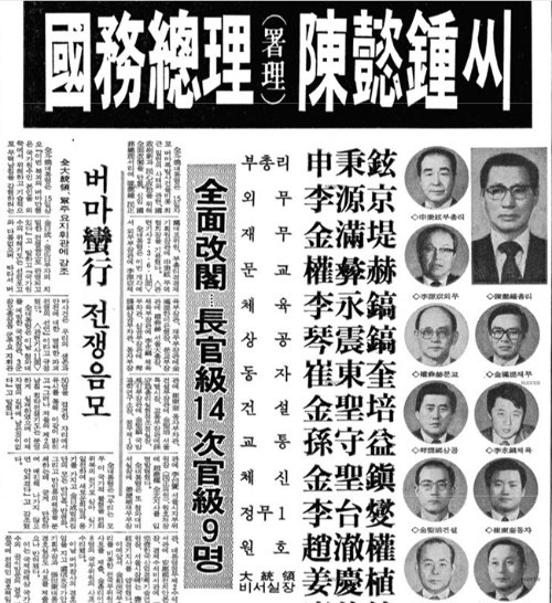 ÇÑÆí ÁÖ¿µº¹(ñ²çµÜØ) ³»¹«, ¹è¸íÀÎ(ÛÑÙ¤ìÒ) ¹ý¹«, À±¼º¹Î(ëÅá¤ÚÂ) ±¹¹æ, ¹ÚÁ¾¹®(ÚÓñ£Ú¡) ³ó¼ö»ê, ±èÁ¤¿¹(ÐÝïáçß) º¸»ç, Á¤ÇÑÁÖ(ï÷ùÓñ») ³ëµ¿, ÀÌÁøÈñ(ì°òÉýý) ¹®°ø, ¹ÚÂù±à(ÚÓóÇÐç) Ãѹ«, ÀÌÁ¤¿À(ì°ïáçé) °ú±â, ¼ÕÀç½Ä(áÝî¤ãÕ) ÅëÀÏ, ±è¿µ±Õ(ÐÝçµÐ³) ¹ýÁ¦ µîÀº À¯ÀӵǾú´Ù.